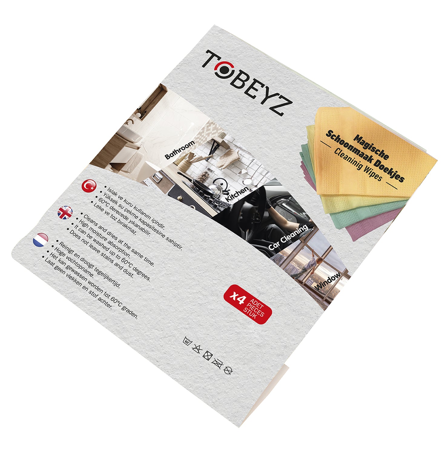 - Quantity: Set of 4 cleaning cloths