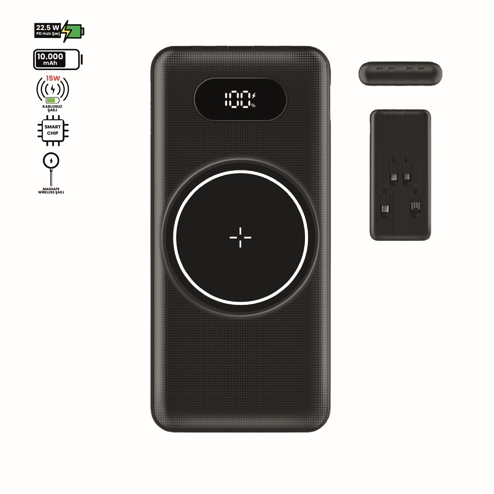 - 10,000mAh Power Bank with 22.5W & 15W Wireless Charging - Black Portable Charger