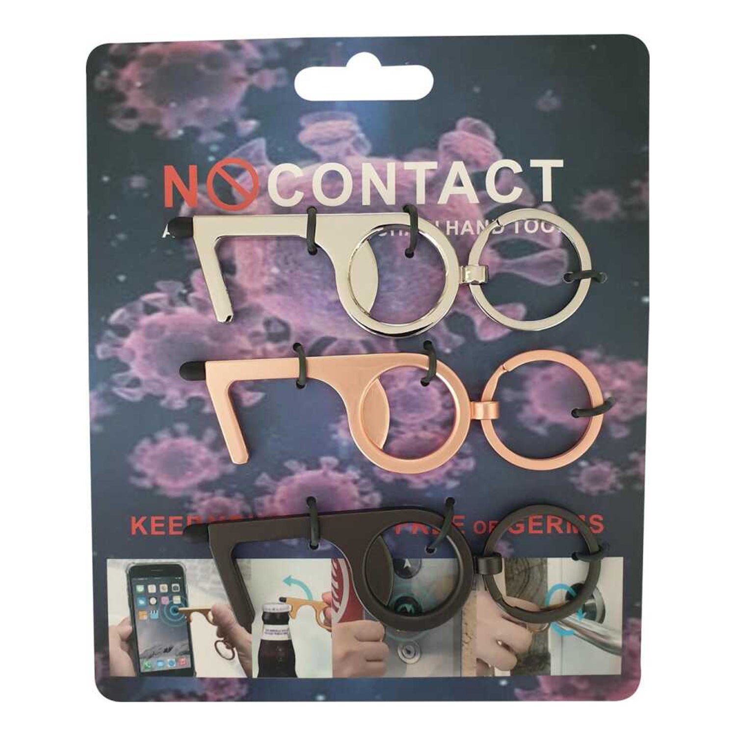 - 🚪 1x Premium Aluminum Hygiene Key with Door Hook Design