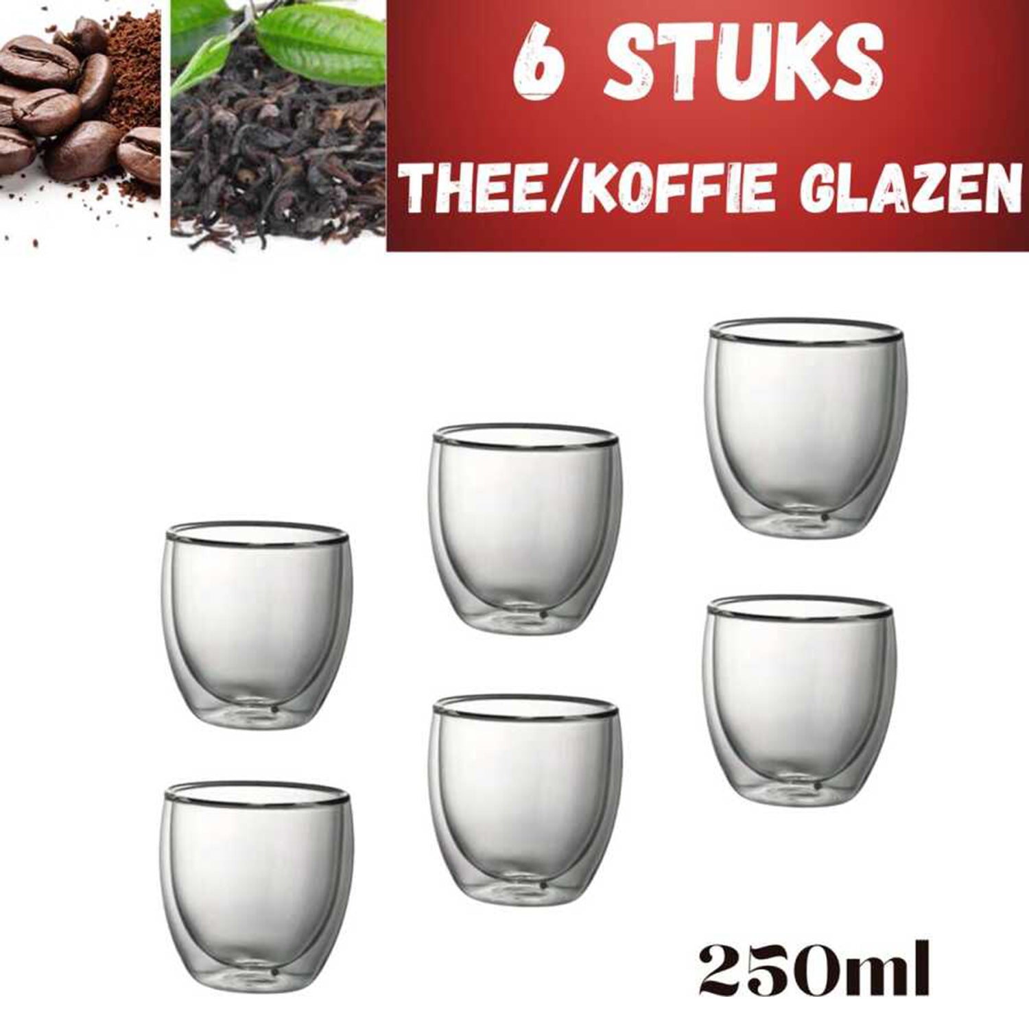 6x Double Wall Coffee Glasses 250ml - Cappuccino Latte Tea Cups