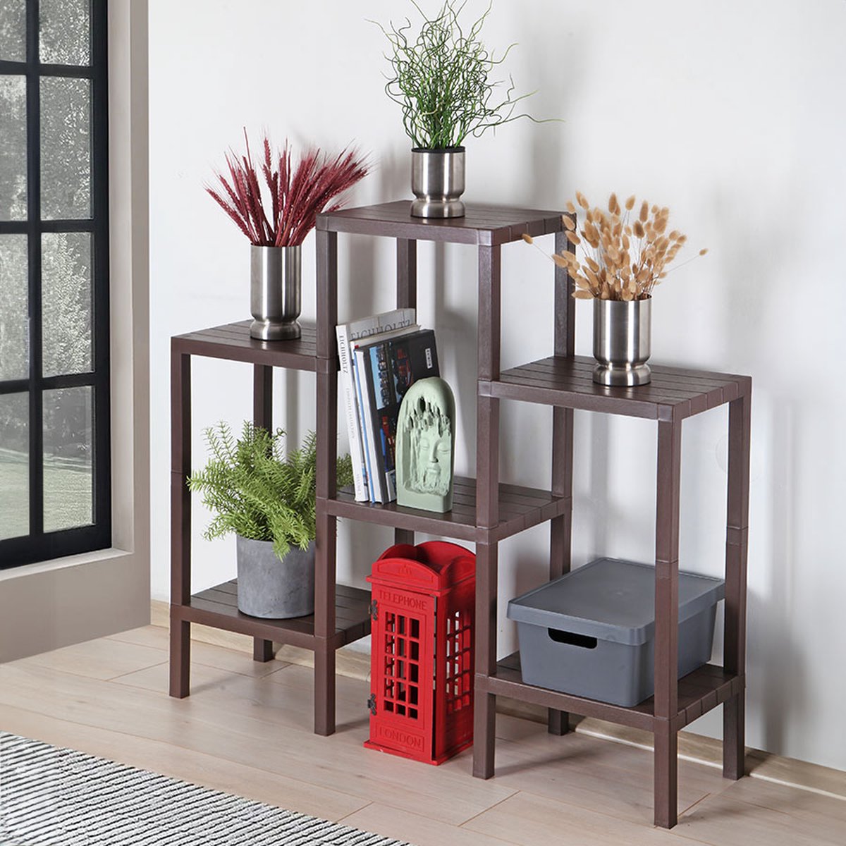 Premium 6-Tier Standing Storage Rack in Brown - Versatile BPA-Free Plastic Organizer for Bathroom & Kitchen with Maximum Space Efficiency