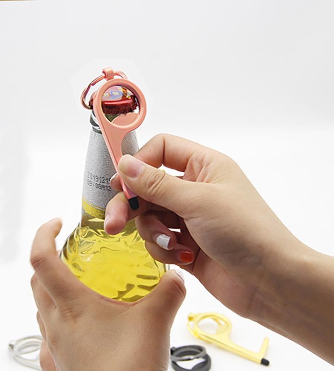 Premium Promohigh Black Contactless Keychain & Bottle Opener - Multi-Functional No-Touch Key Tool with Touchscreen Support for Hygienic Door Opening & Hands-Free Operation