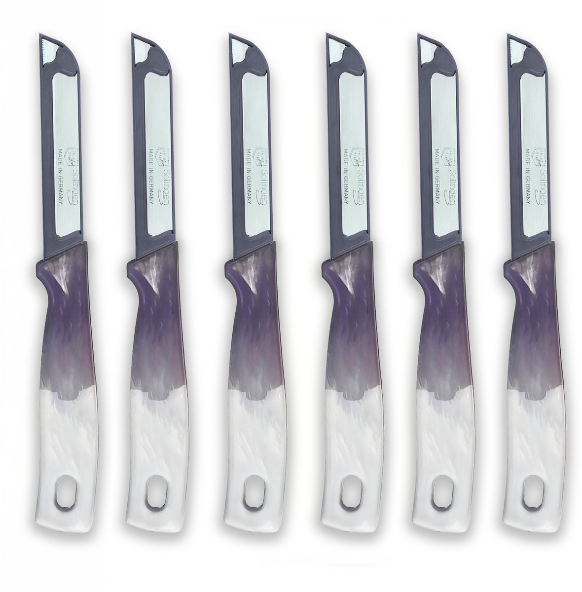 Solingen Serrated Knife - Vegetable and Tomato Knife 18.5cm with Blade Cover Ergonomic Handle Purple 6 Pieces